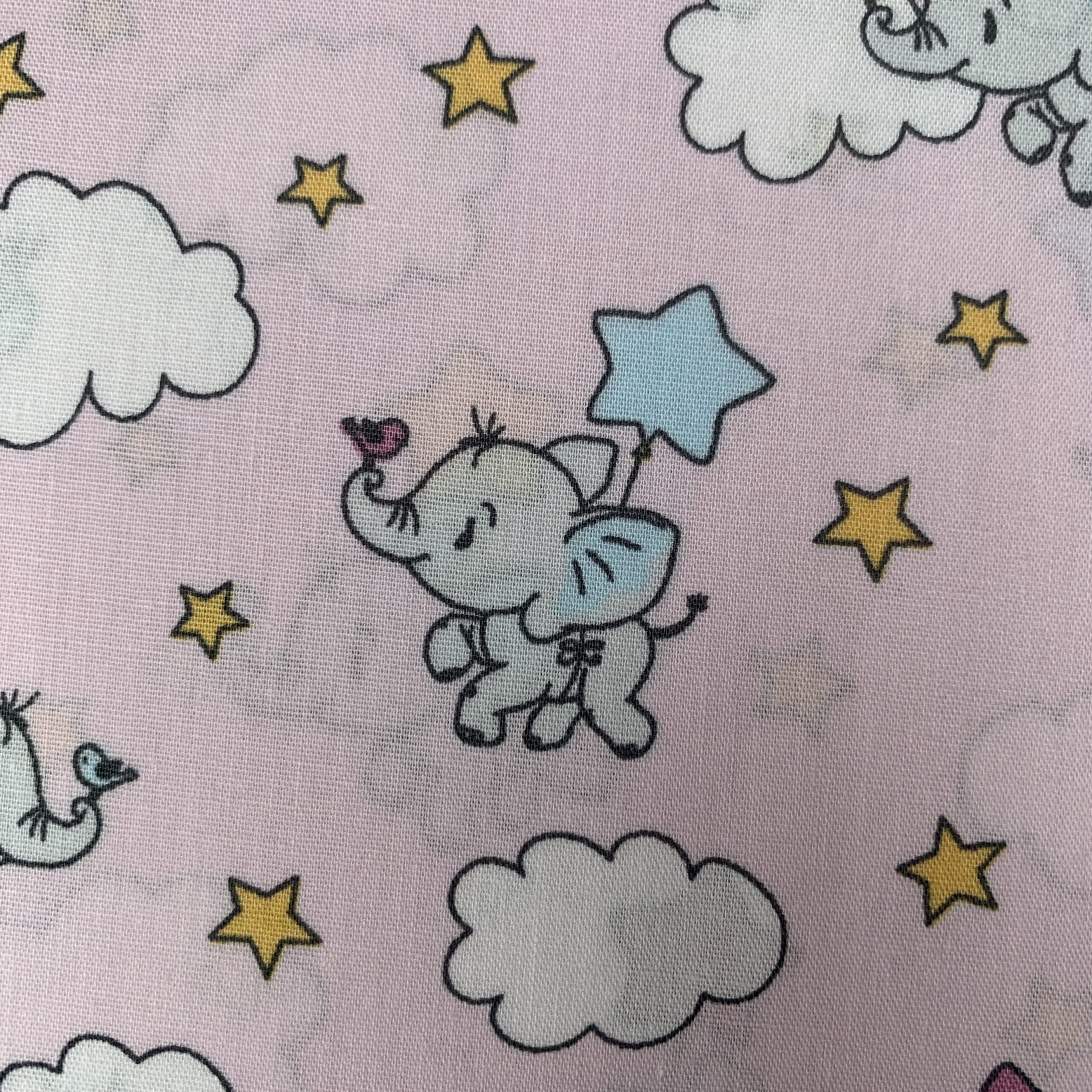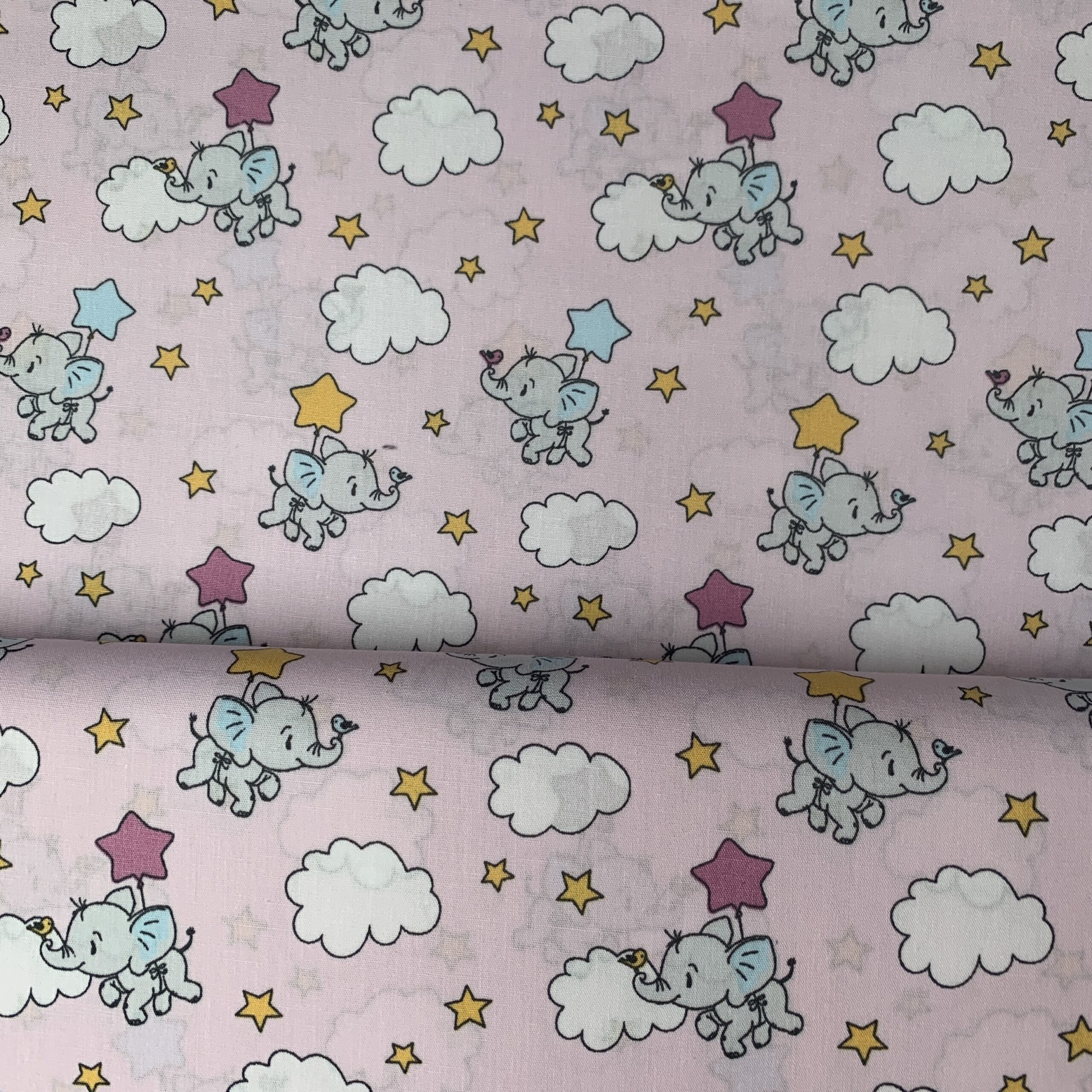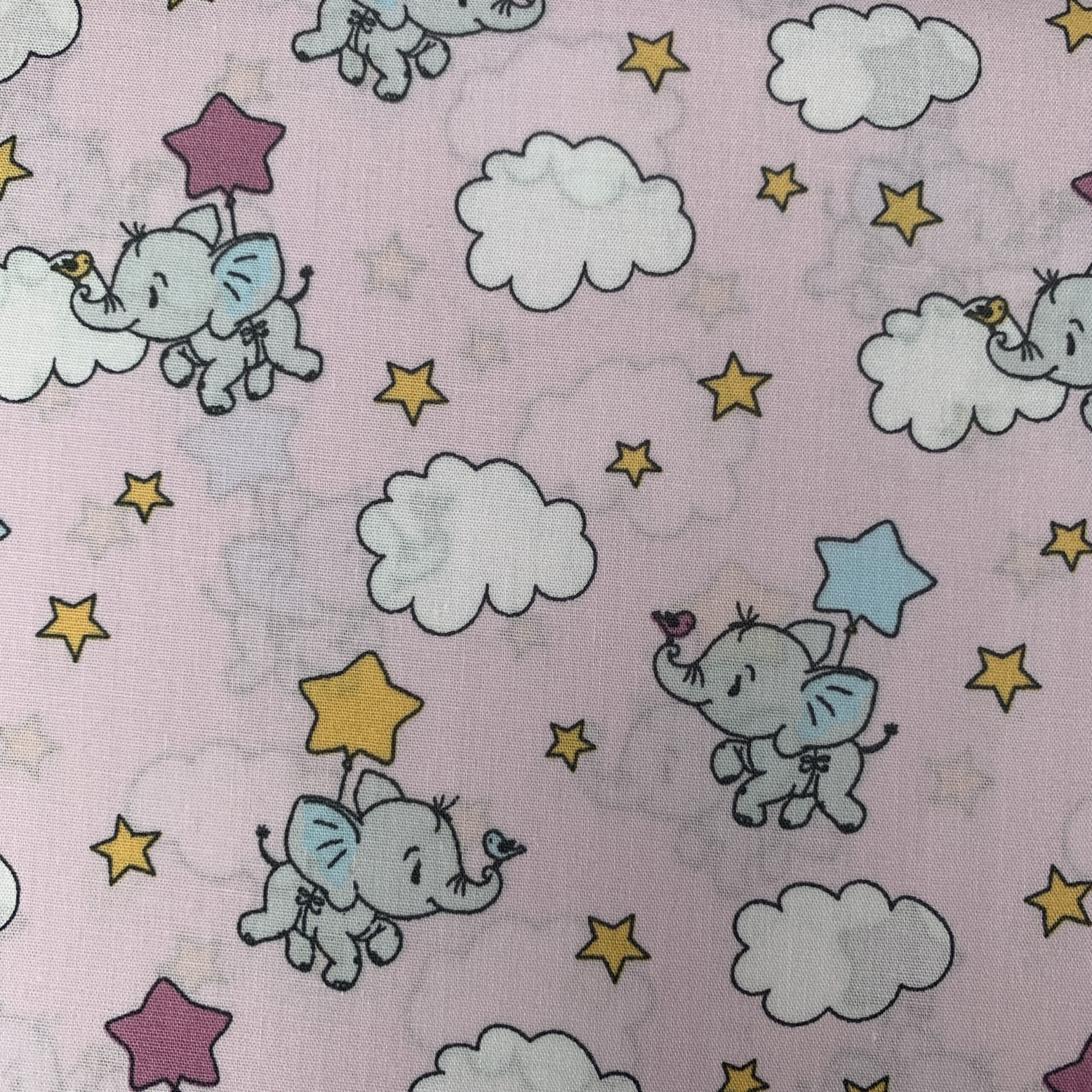 Baumwollstoff Elefanten rosa | Tierischer Druckstoff für Baby & Kinder | Wolken & Sterne | Meterware