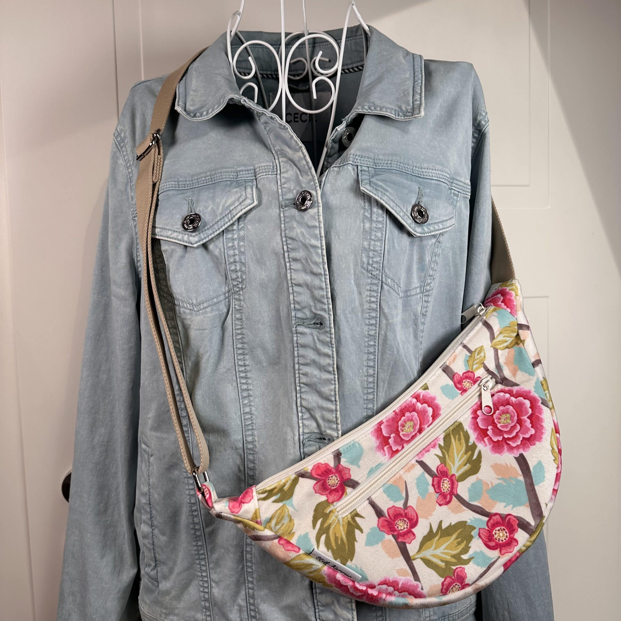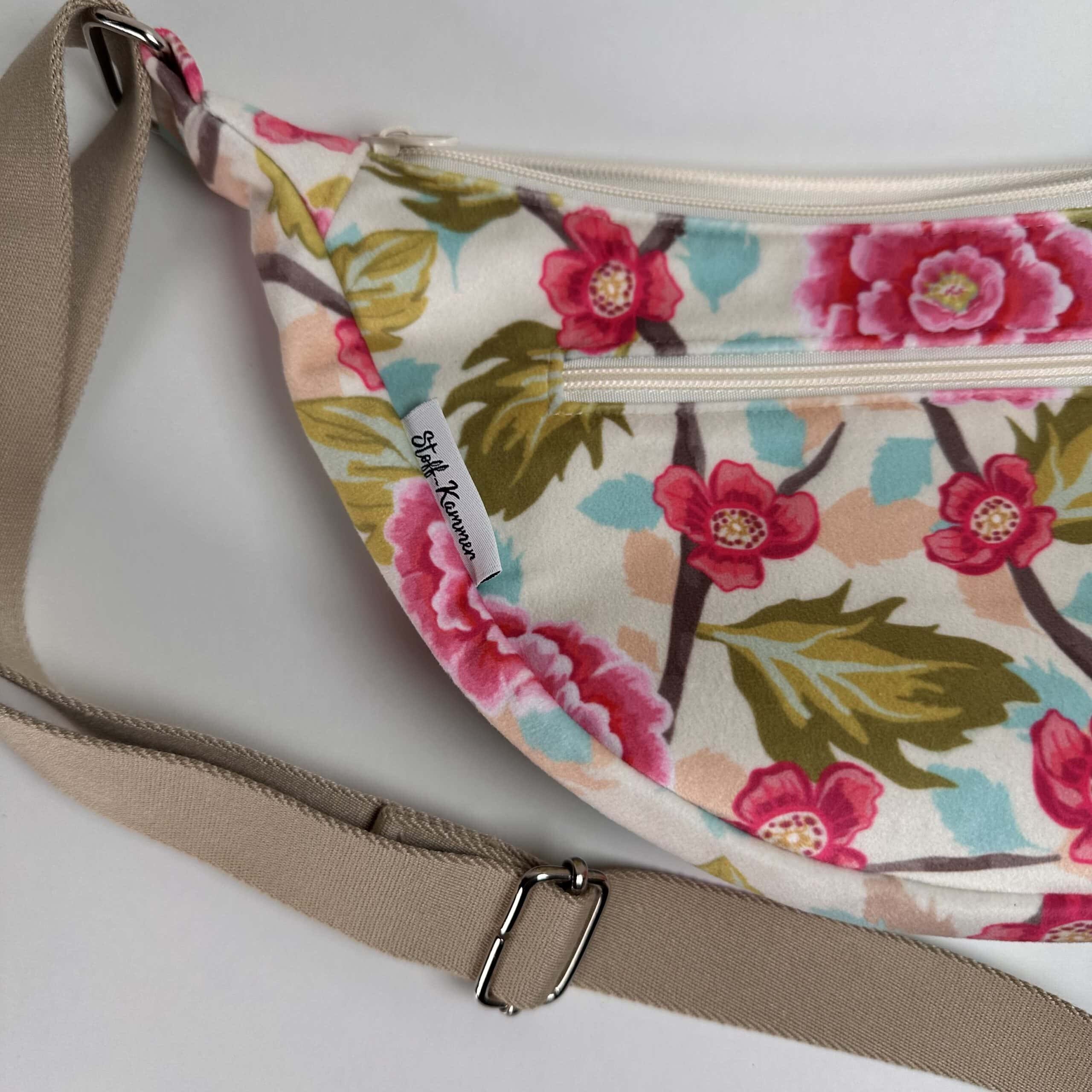 Schultertasche Crossbody Moon Bag Luna S | Damen Blumen Samt | Handmade Unikat